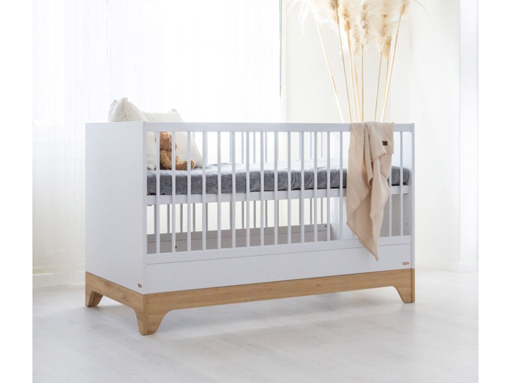 Variabilná detská postieľka Lumina White 140x70cm bude slúžiť vám aj vášmu dieťaťu po dlhú dobu až do 5-6 rokov. Jej čistý dizajn, prírodný vzor dreva a kombinácia bielej farby vyžarujú teplo a kľud a dokonale zapadnú do každého interiéru.
