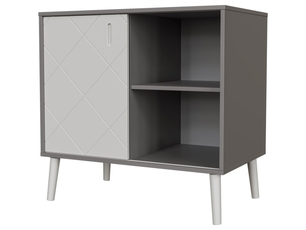 Ponúka úložný priestor a pritom nezaberá zbytočne priestor. Jej výška, úložné plochy a variabilita boli navrhnuté na základe potrieb rodičov. Predná časť výrobku je vyrobená z lakovanej MDF s hodvábnym leskom, zatiaľ čo zvyšok nábytku je vyrobený z laminovanej drevotriesky. Slúži nielen ako úložný priestor, ale hornú časť komody je možné po namontovaní nástavca na komodu, využiť ako prebaľovací pult.