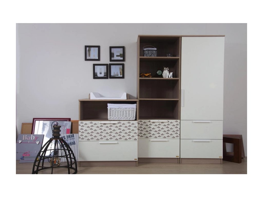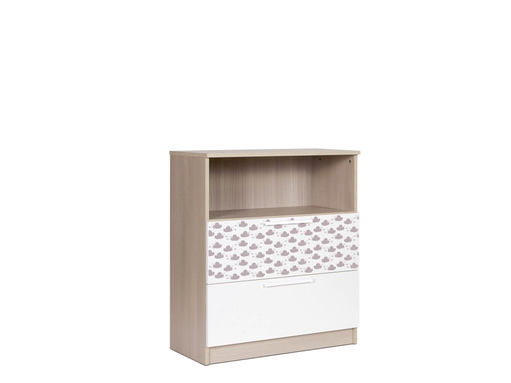Komodu Faktum Poppi s 2 zásuvkami (biela s motívom obláčika)