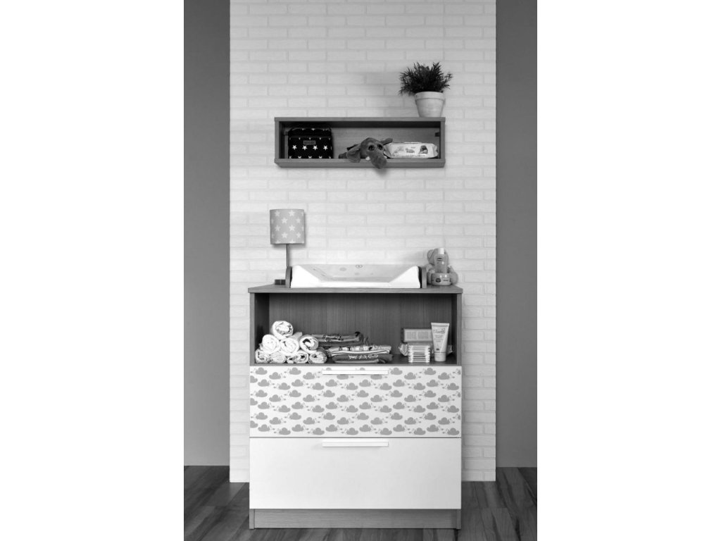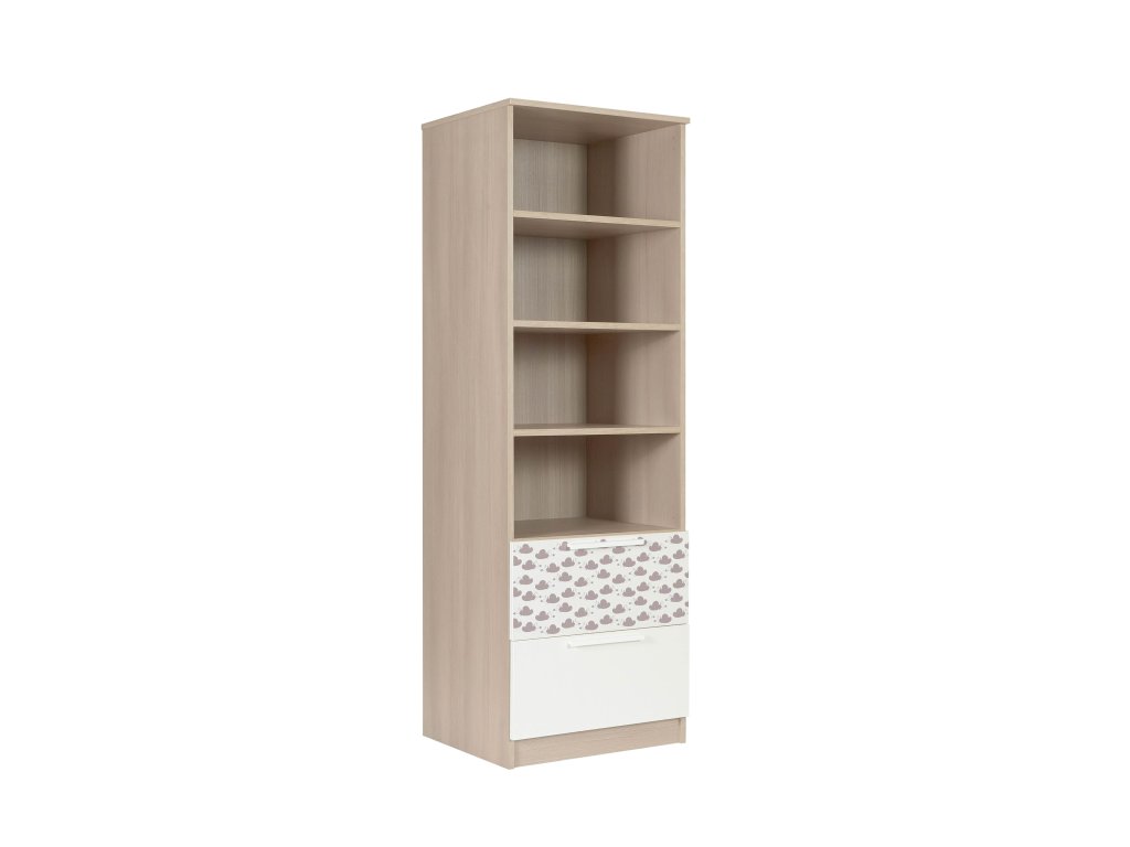 Policový regál s 2 zásuvkami Faktum Poppi (biela s motívom obláčika)