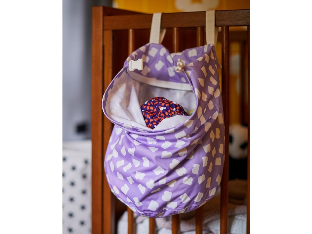 Superveľká nepriepustná taška na prepravu použitých plienok alebo mokrých plaviek! Je ideálna pre uloženie použitých plienok, zašpineného oblečenia či mokrých plaviek, keď ste mimo domova. Prázdna nezaberá žiadne miesto a keď je plná, dokonale chráni ostatné veci. Aj doma v nej možno pohodlne skladovať použité látkové plienky do ďalšieho prania bez toho, aby boli cítiť.
