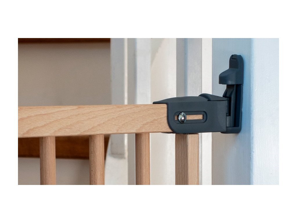 Otočné držiaky umožňujú montáž schodiskového roštu aj pod šikmým uhlom - ľahké prispôsobenie krivým stenám. Zábrana je vysoká 80,5 cm a poskytuje robustnú ochranu, zatiaľ čo intuitívny jednoručný mechanizmus uľahčuje prístup aj dospelým, takže deti sú pri preskúmavaní v bezpečí. Nastaviteľná konštrukcia umožňuje, aby sa schodisková zábrana zmestila do akéhokoľvek otvoru so šírkou medzi 70,5-110 cm pri montáži vo vnútri otvoru/zárubne a 65,5-102 cm pri montáži na/mimo rám otvoru/dvere. Konštrukcia tejto schodiskovej zábrany zohľadňuje aj soklové lišty. Nie je tu teda potrebné riešenie pre domácich majstrov. So schodiskovou zábranou BabyDan AdjustPro máte voľný priechod, pretože zábrana nemá v spodnej časti žiadne lišty, o ktoré by ste mohli zakopnúť. Táto konštrukcia z nej tiež robí obzvlášť bezpečnú bezpečnostnú bránu pre hornú časť schodiska. V neposlednom rade sa táto schodisková brána dodáva s nožičkami pod dverami pre extra stabilitu, keď sú otvorené. V dolnej časti nie je potrebné zábranu prekračovať. Zodpovedá najnovšej norme EN1930:2011. Made in Denmark. Hmotnosť: 4 kg. Rozmery: 81x110x5 cm.