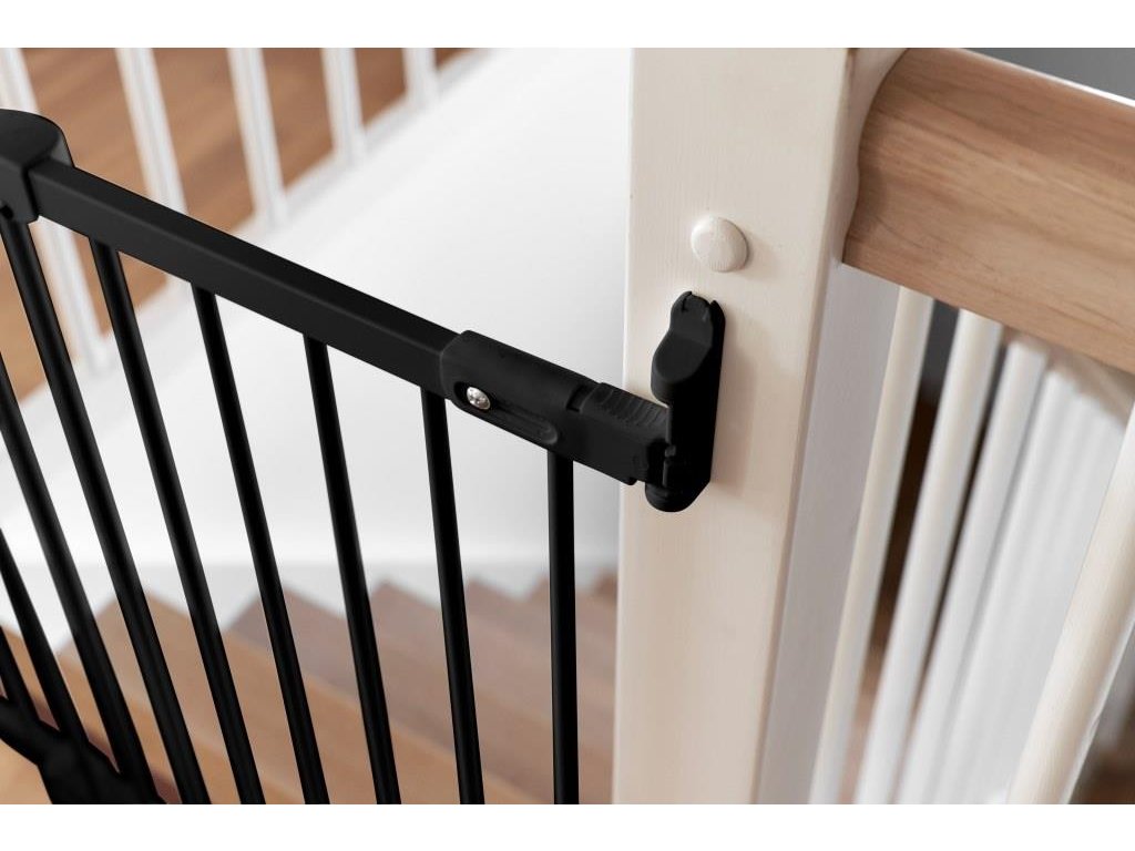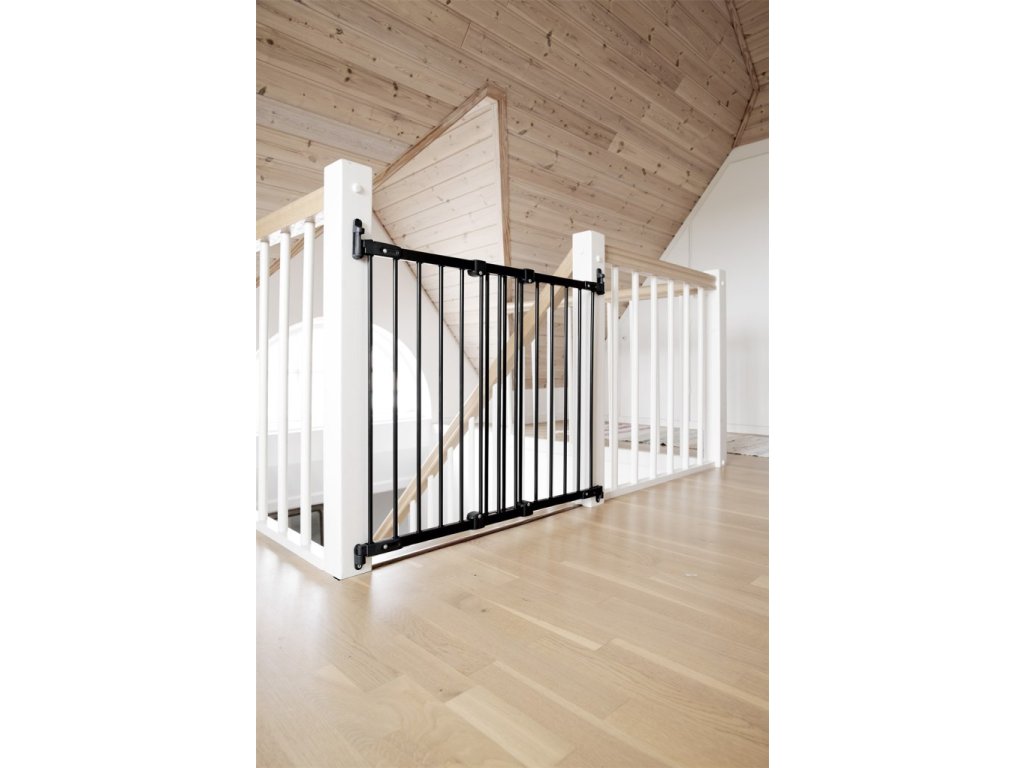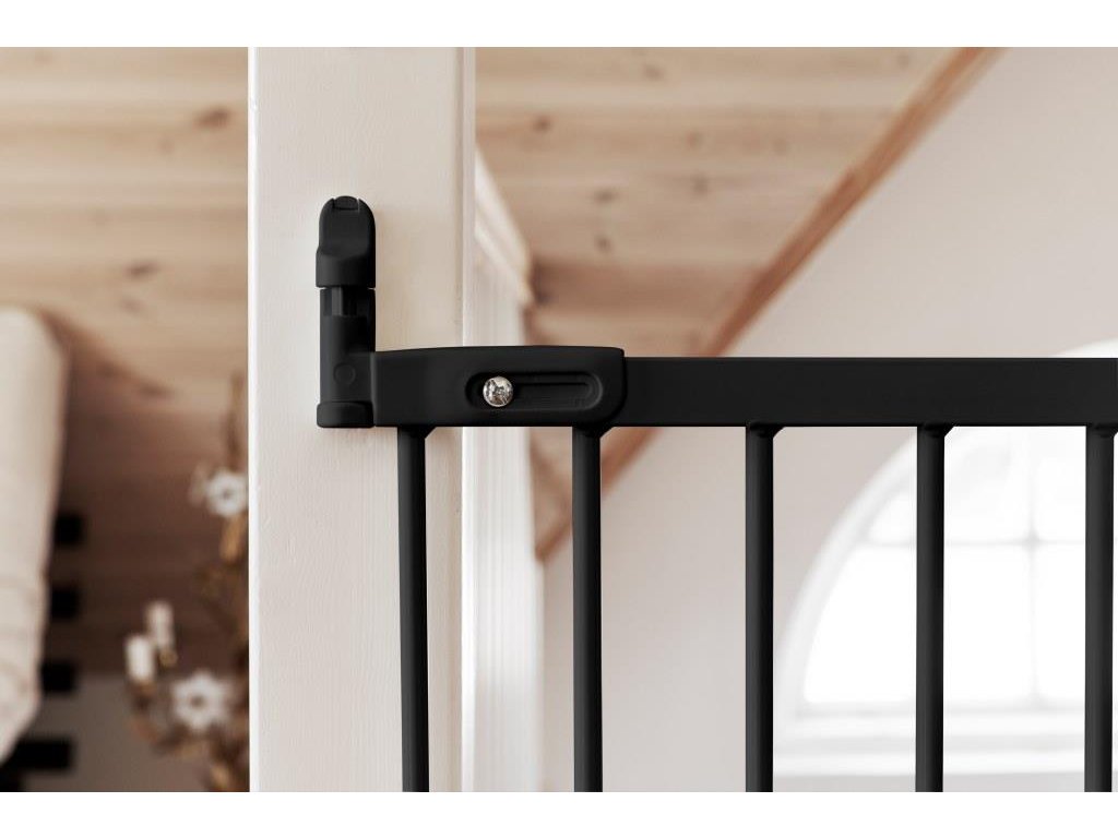 Skrutkovacia ultraflexibilná kovová otvorová bezpečnostná zábrana s nastaviteľnou dĺžkou od BabyDanu, svetového odborníka na bezpečnosť detí, v čiernom laku.